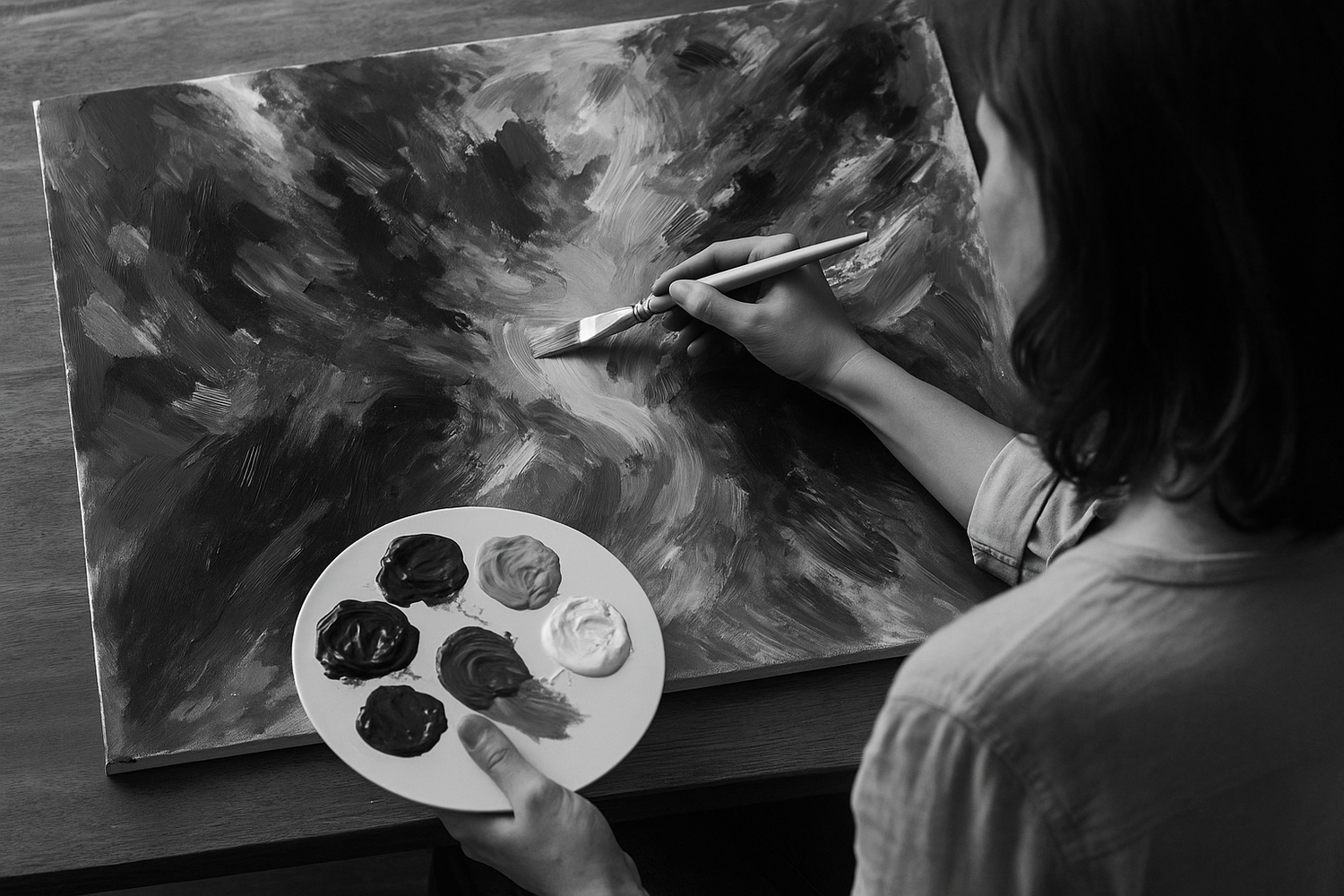 All pieces are original acrylic works. Each one is created through a slow, intuitive process that connects emotion, movement and energy into a single expressive whole.